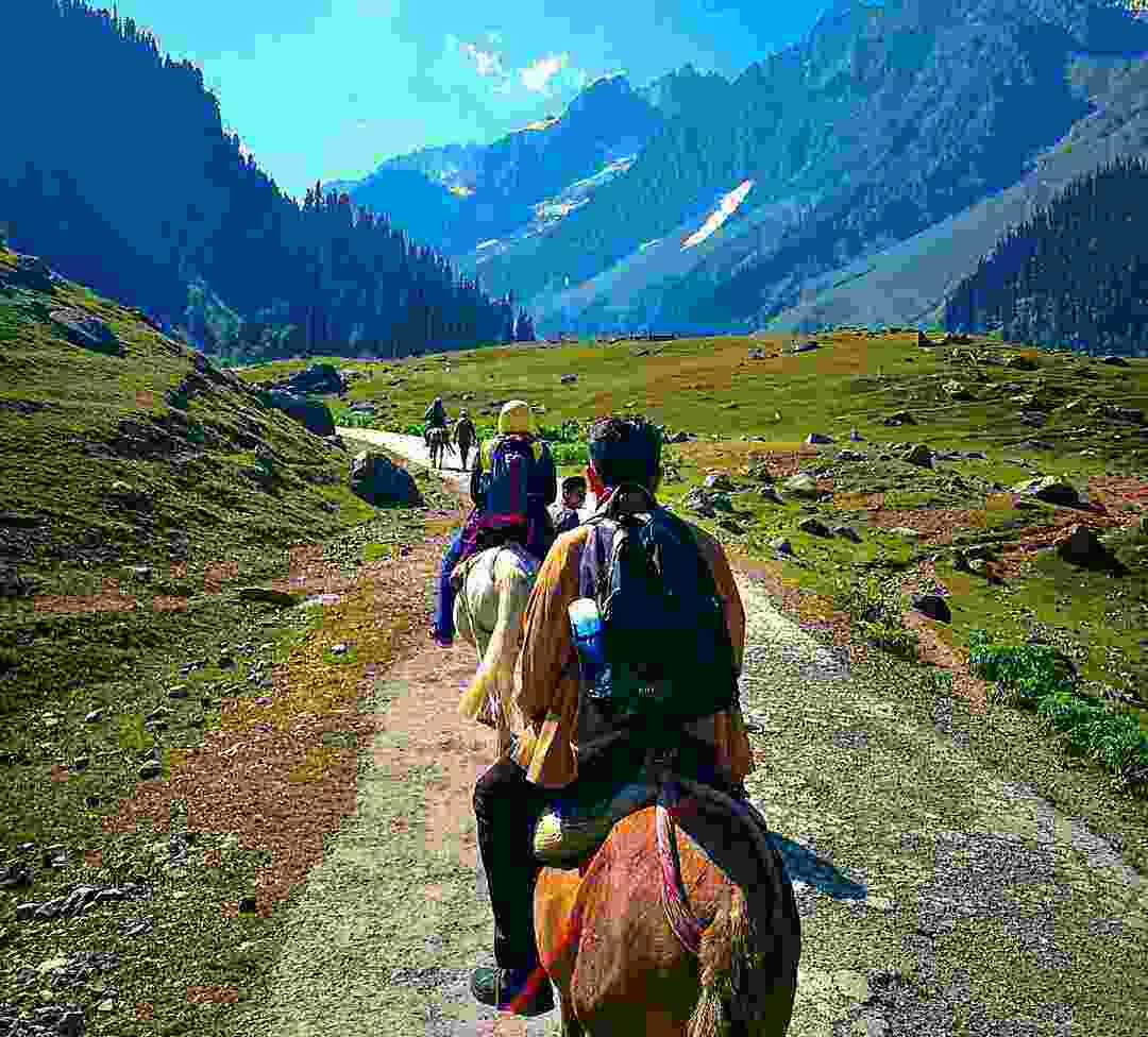 Without doing pony rides, can we enjoy Sonmarg? Exploring the beautiful and eye-catching nature of a horse is a popular activity in Sonmarg. Horse riding isn't just an activity but also a singular means to explore the beauty of Sonmarg. Today, many travelers' mostly family vacationers and honeymoon couples, utilize this opportunity to relish the unmatched beauty of popular tourist attractions and some lesser-known destinations. Additional to ridding, trekkers also hire horses to move their equipment and luggage. Sonmarg is also known as the land of glaciers and lakes. One can cover all places and snow glaciers by hiring a horse. One can experience horse riding anytime, but if you want to explore hidden spots and valleys, then from April to July is a perfect time for this. It is most refreshing when one experiences the beauty of emerald blue water with breathtaking snow-capped mountains while riding a horse.